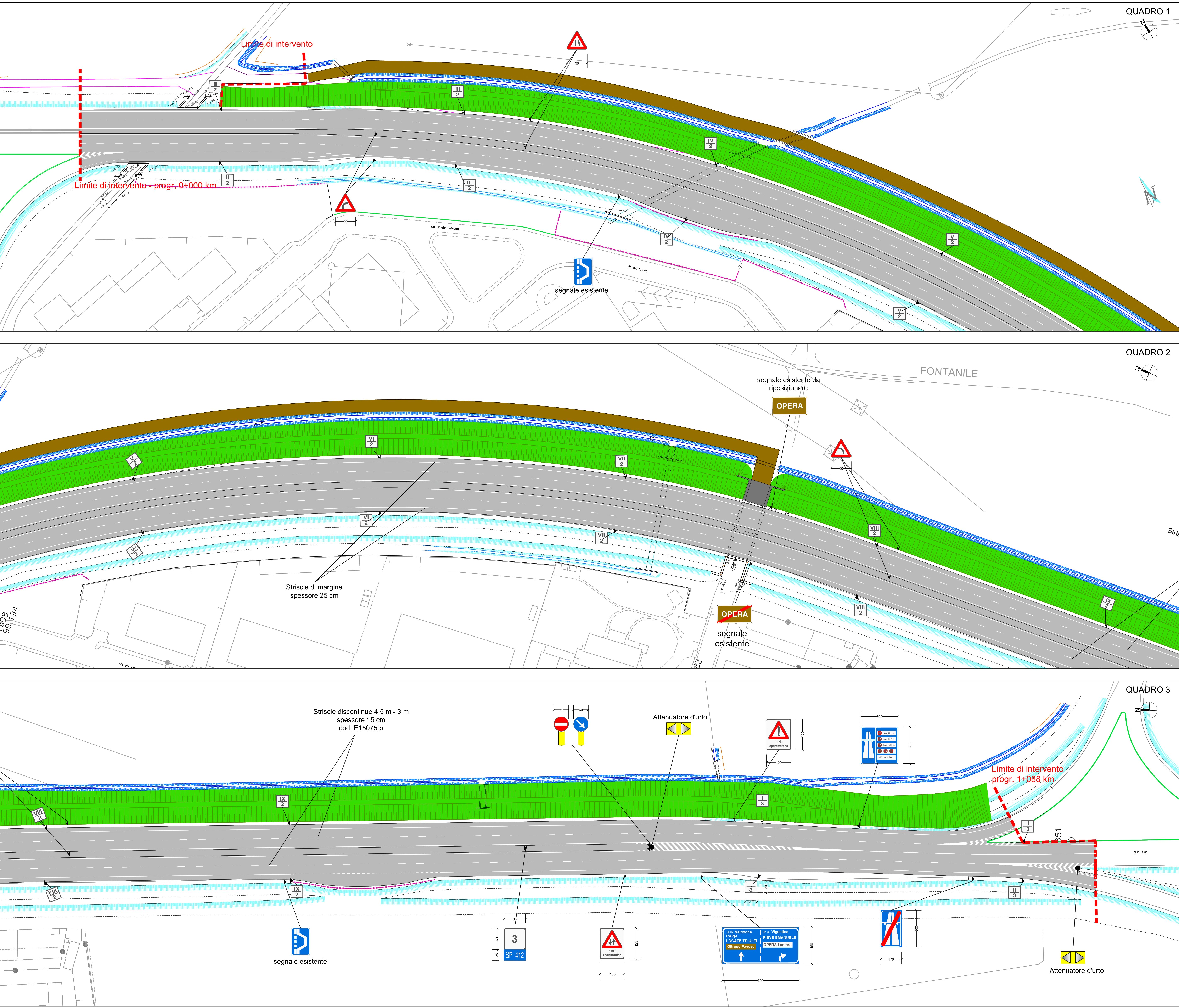 realizzazione di una doppia carreggiata con due corsie per senso di marcia dal km 2+300 sino al km 3+400.